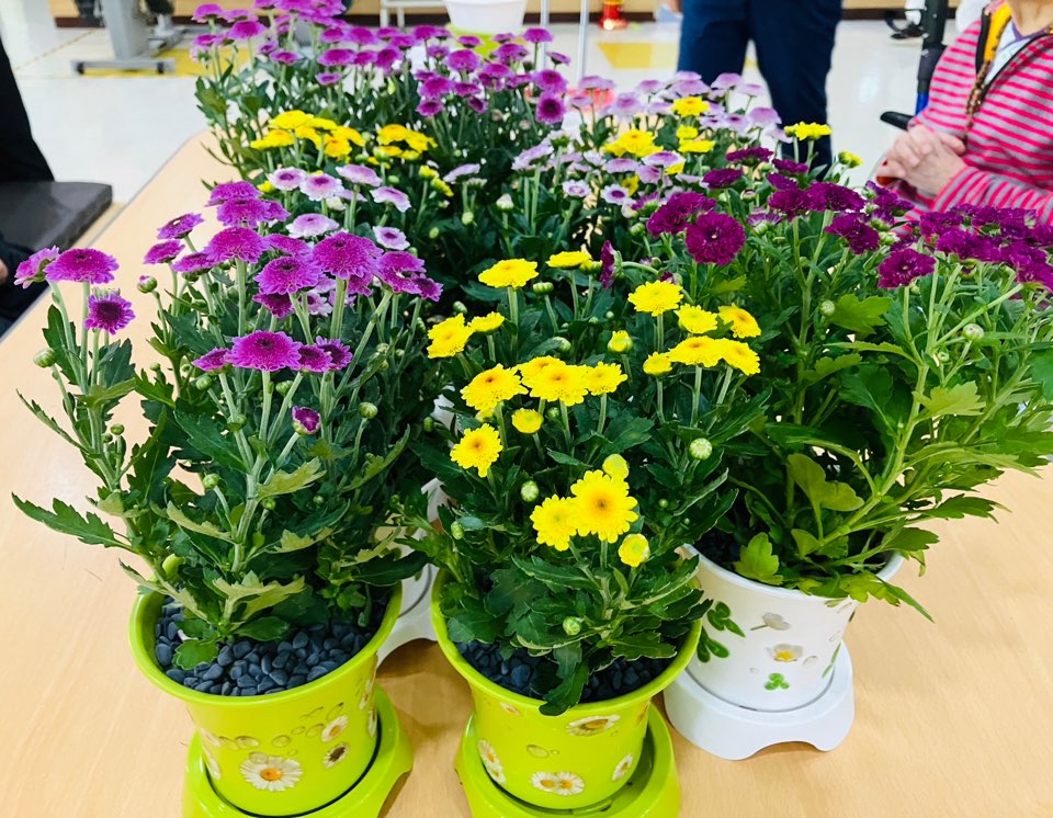 오늘 저희와 함께 만든 국화화분을 보며