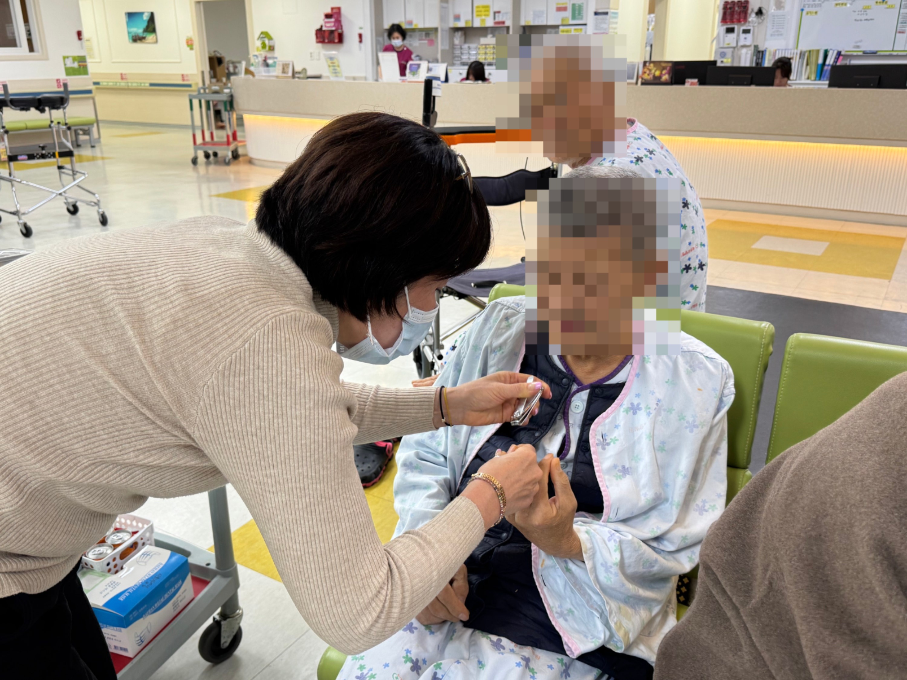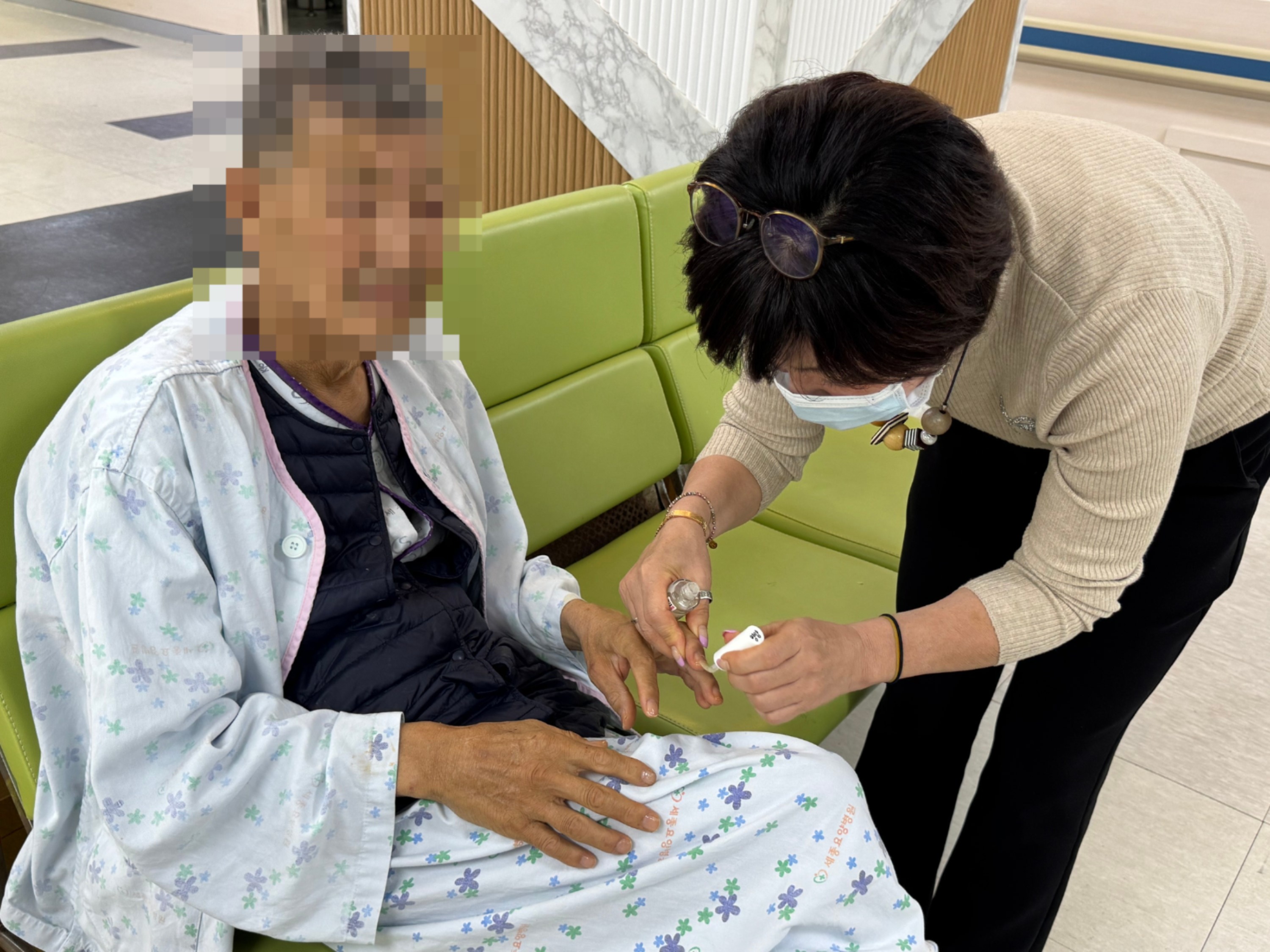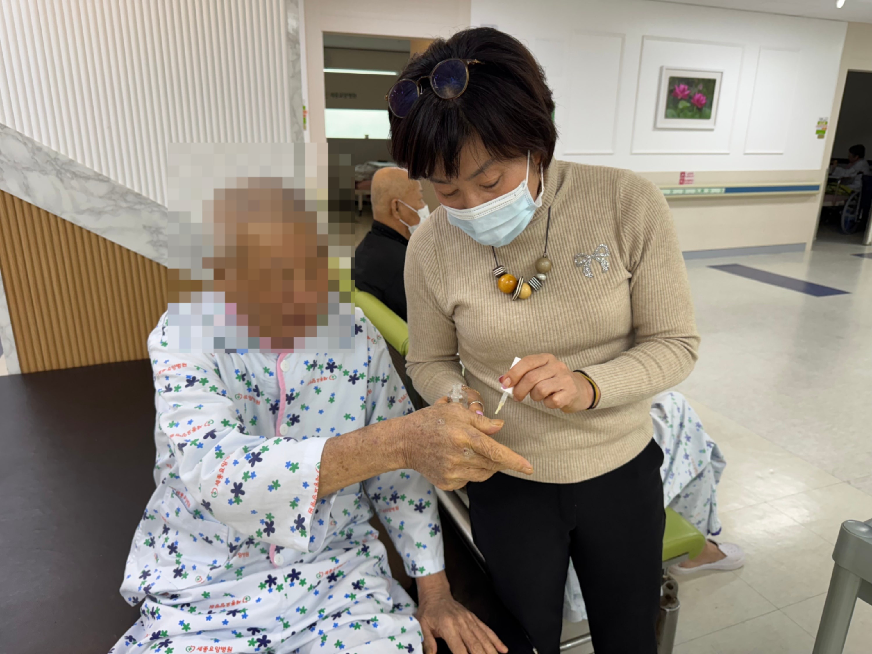 어르신 한 분 한 분 손 상태를 살피며 손톱관리를 도와주셨어요.