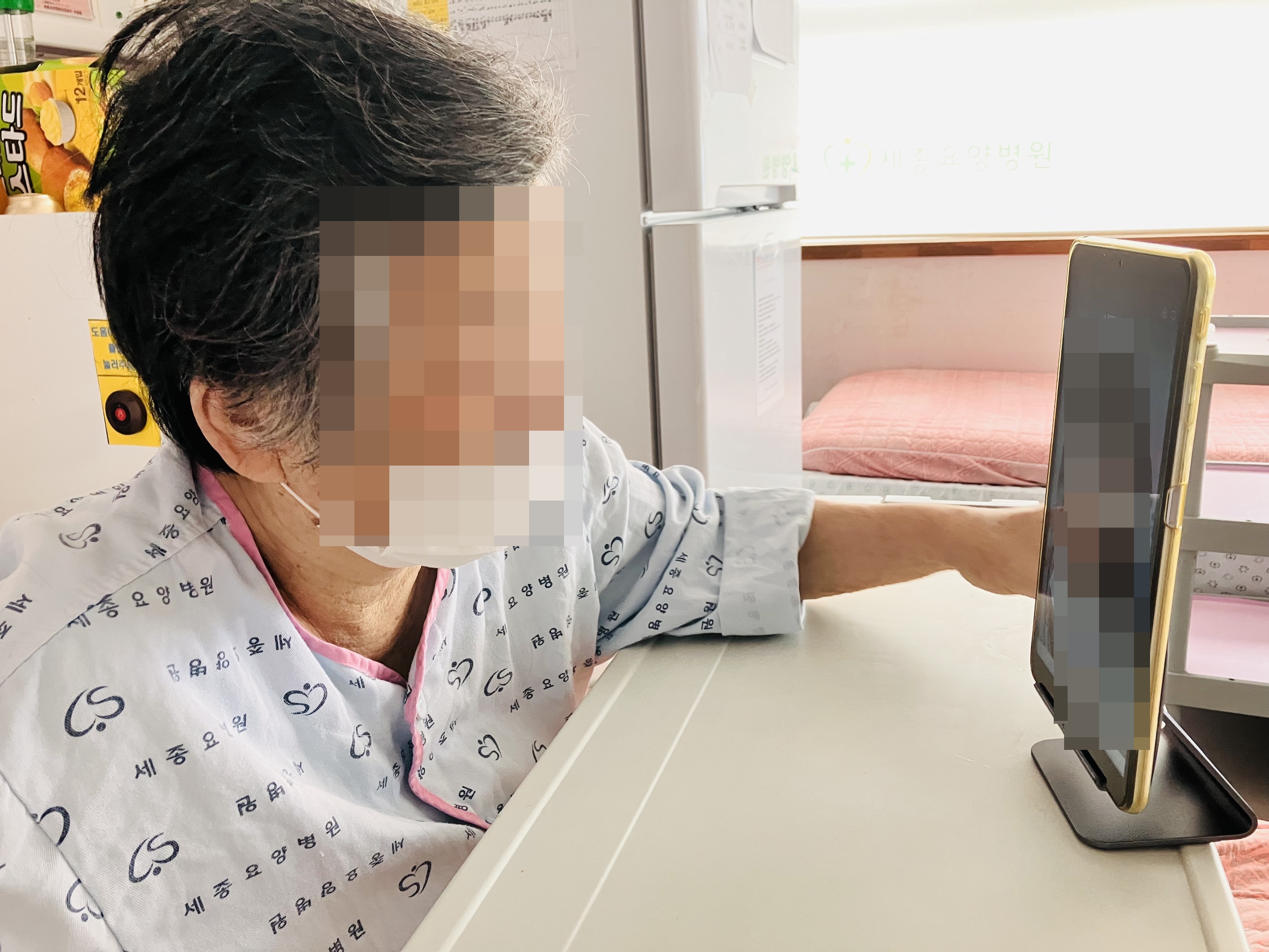 영상통화로 가족들을 만나게 해드렸습니다.