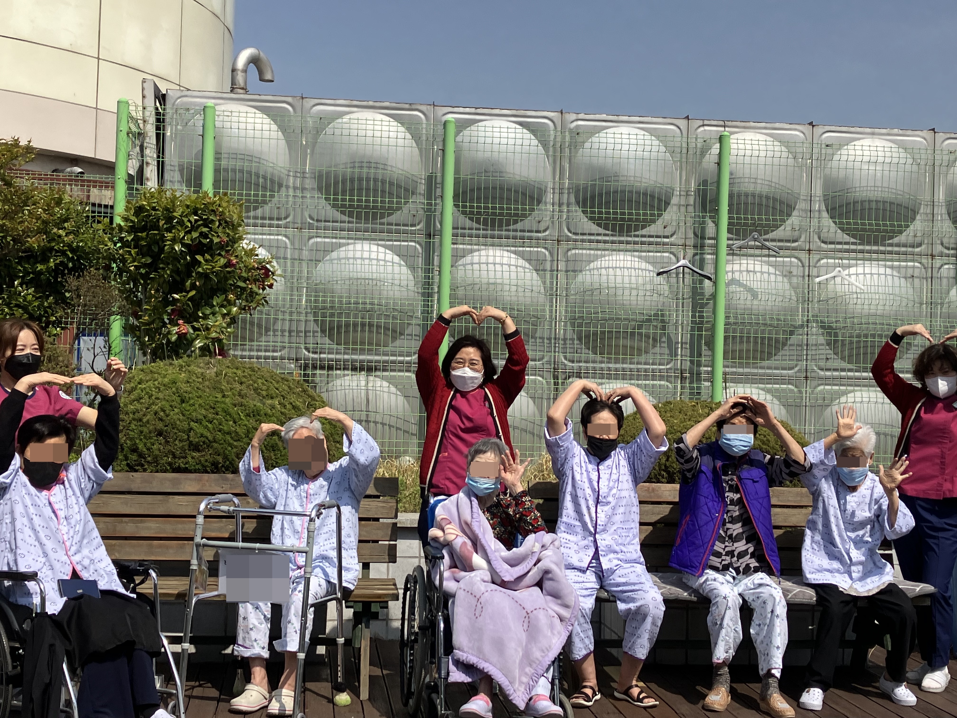 환하게 웃으며 “좋다, 따뜻하다~”를