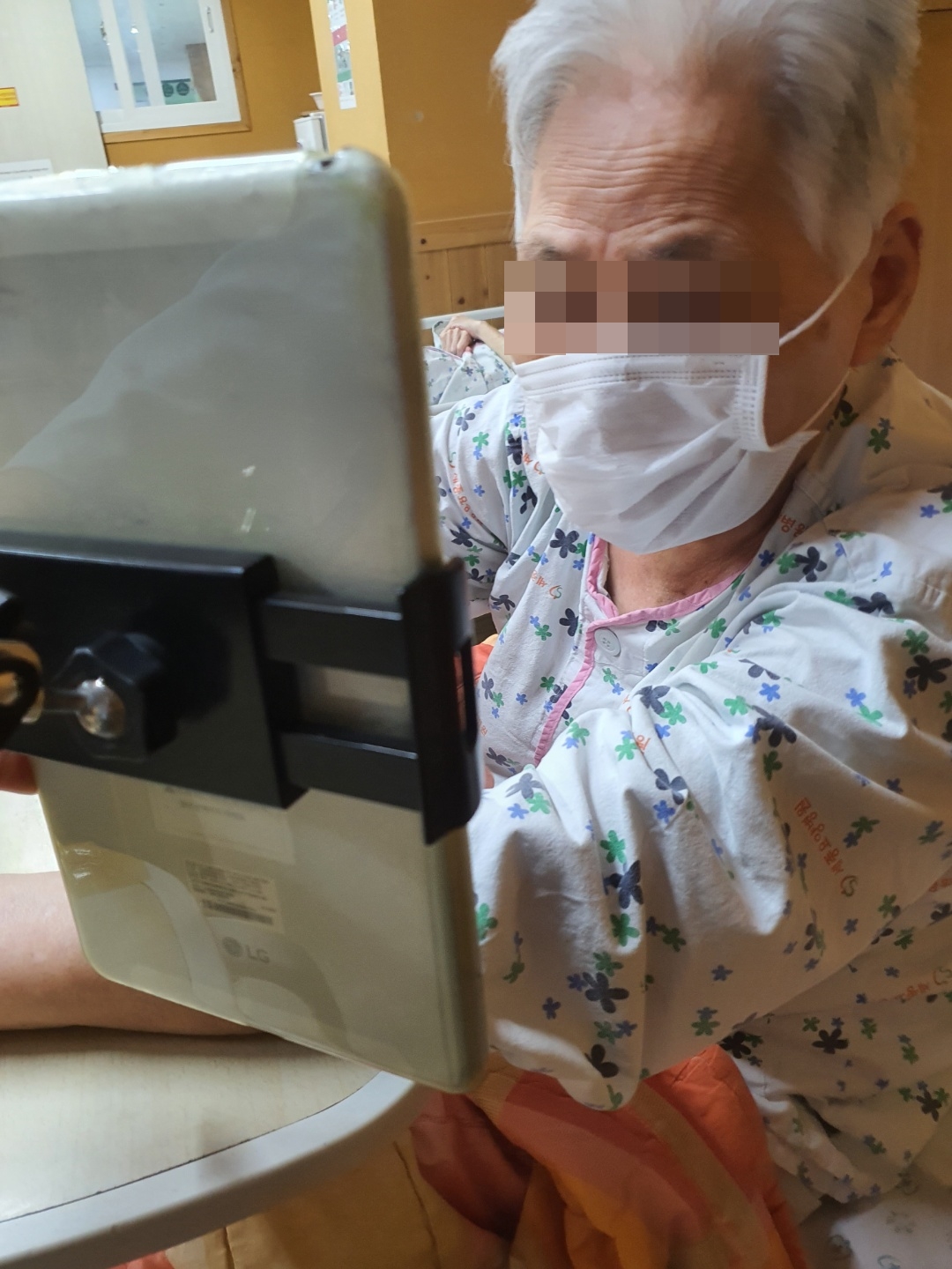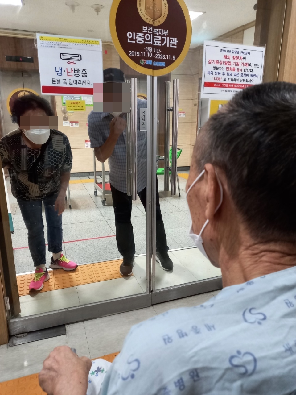 코로나19로 인하여 문 사이로 불편하게