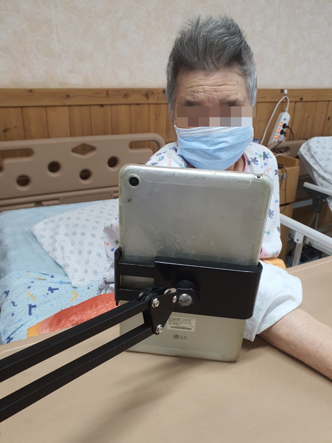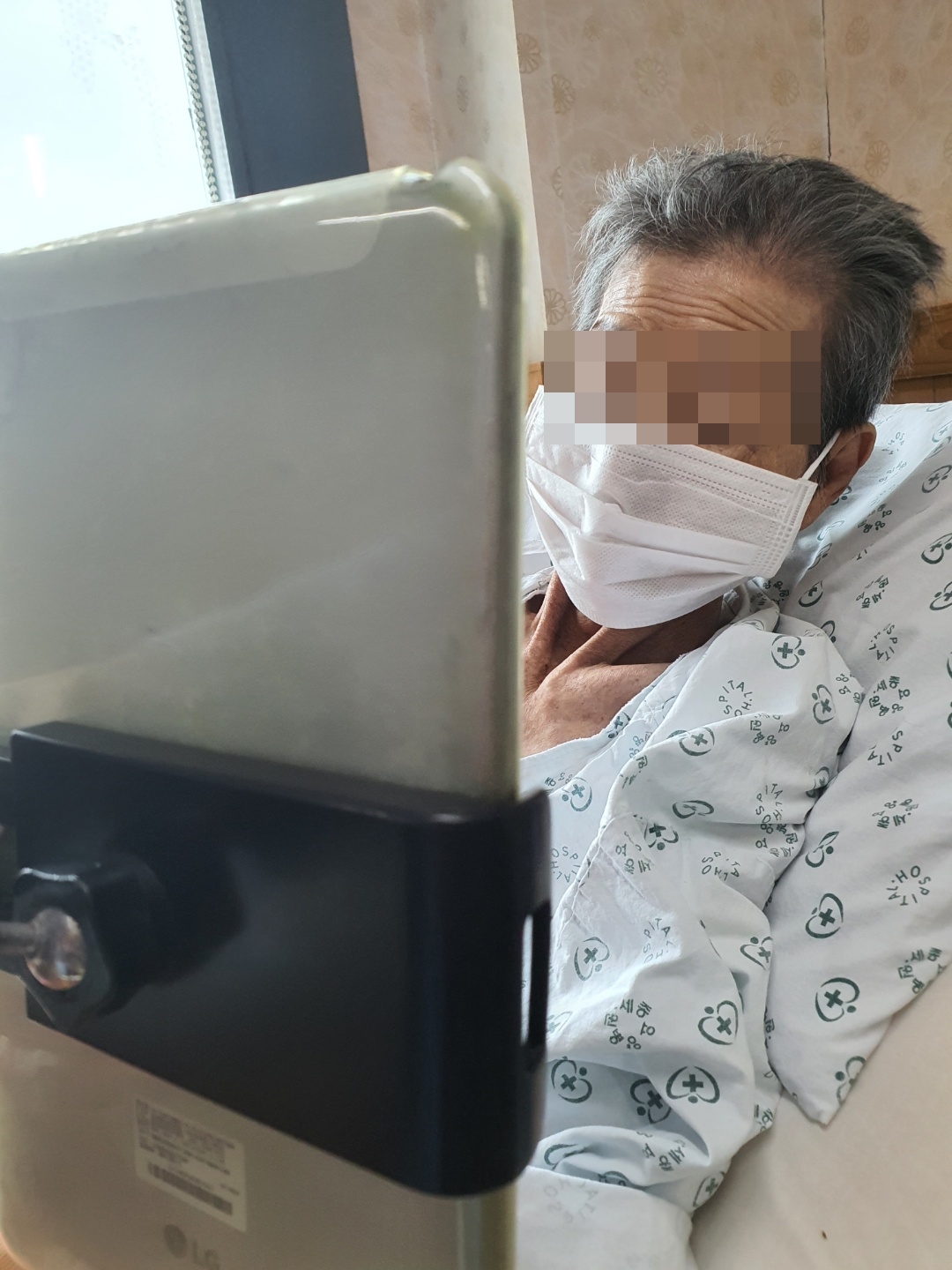 환자와 보호자가 얼굴을 만지면서