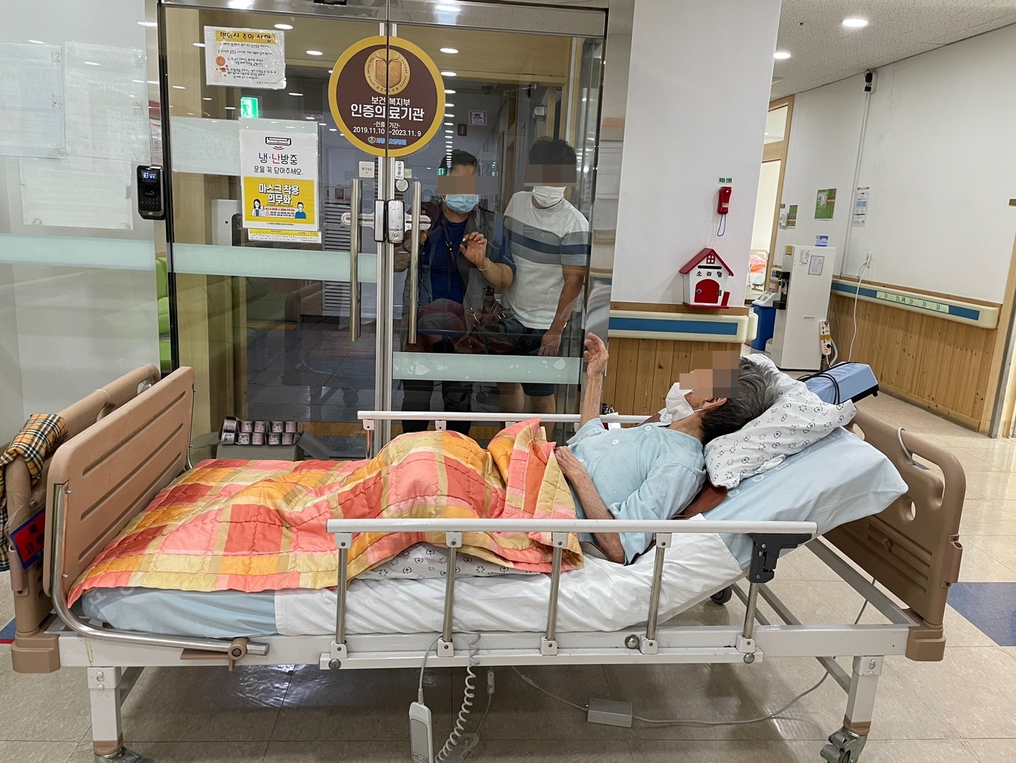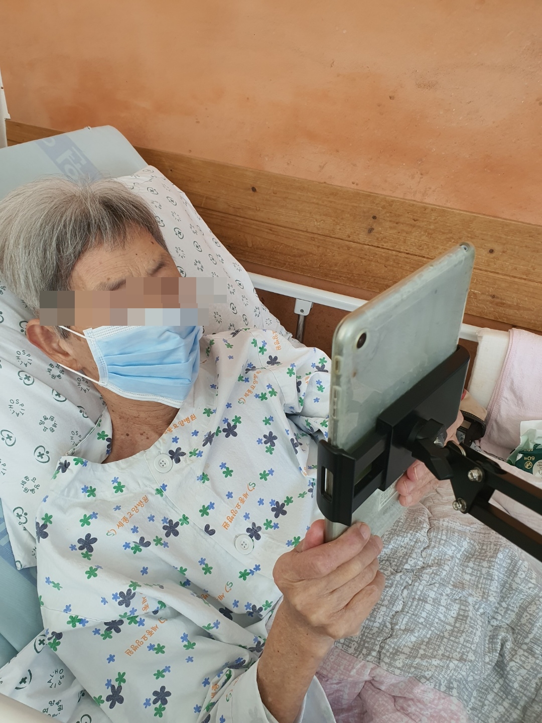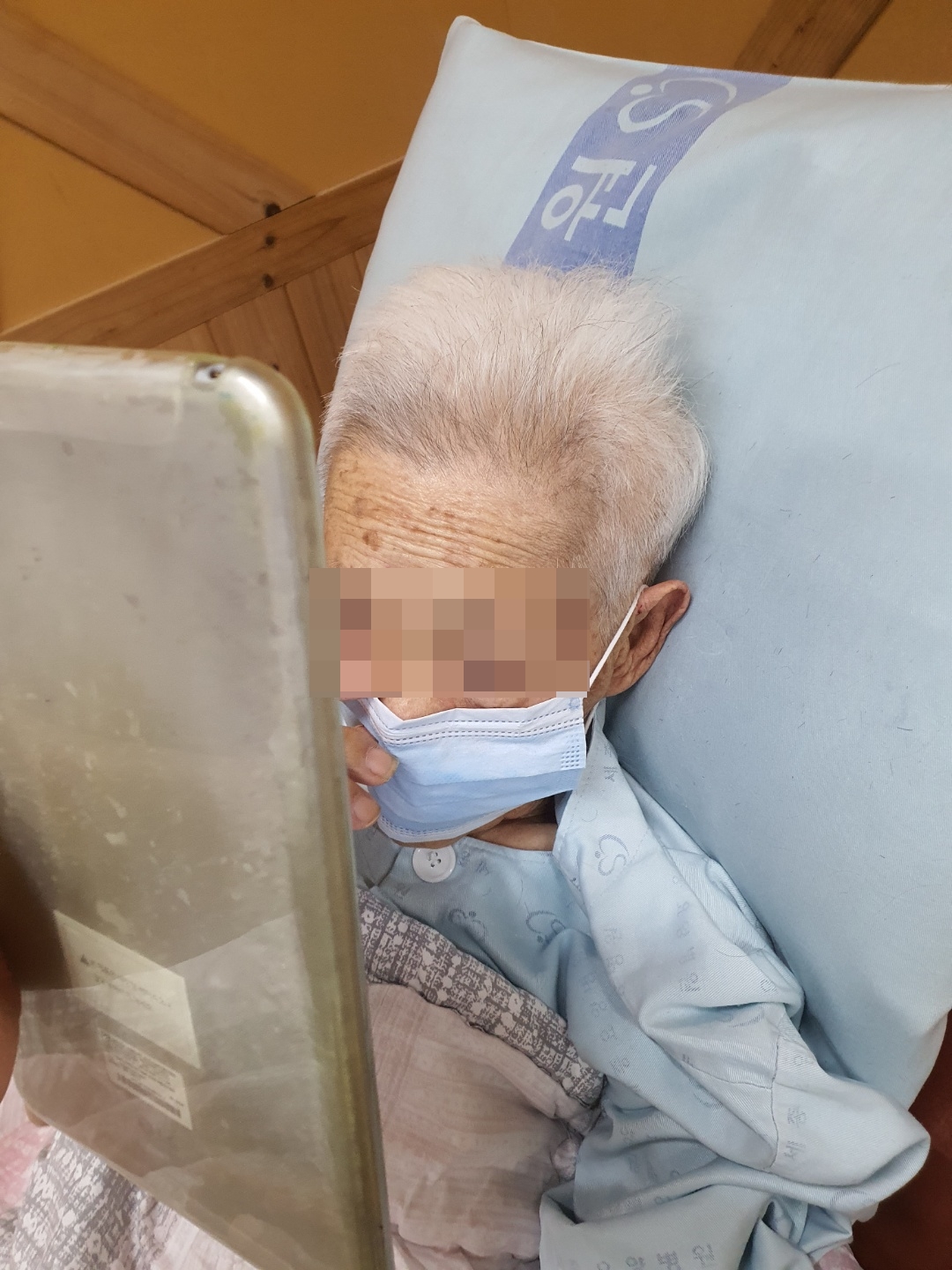 환자와 보호자가 얼굴을 만지면서