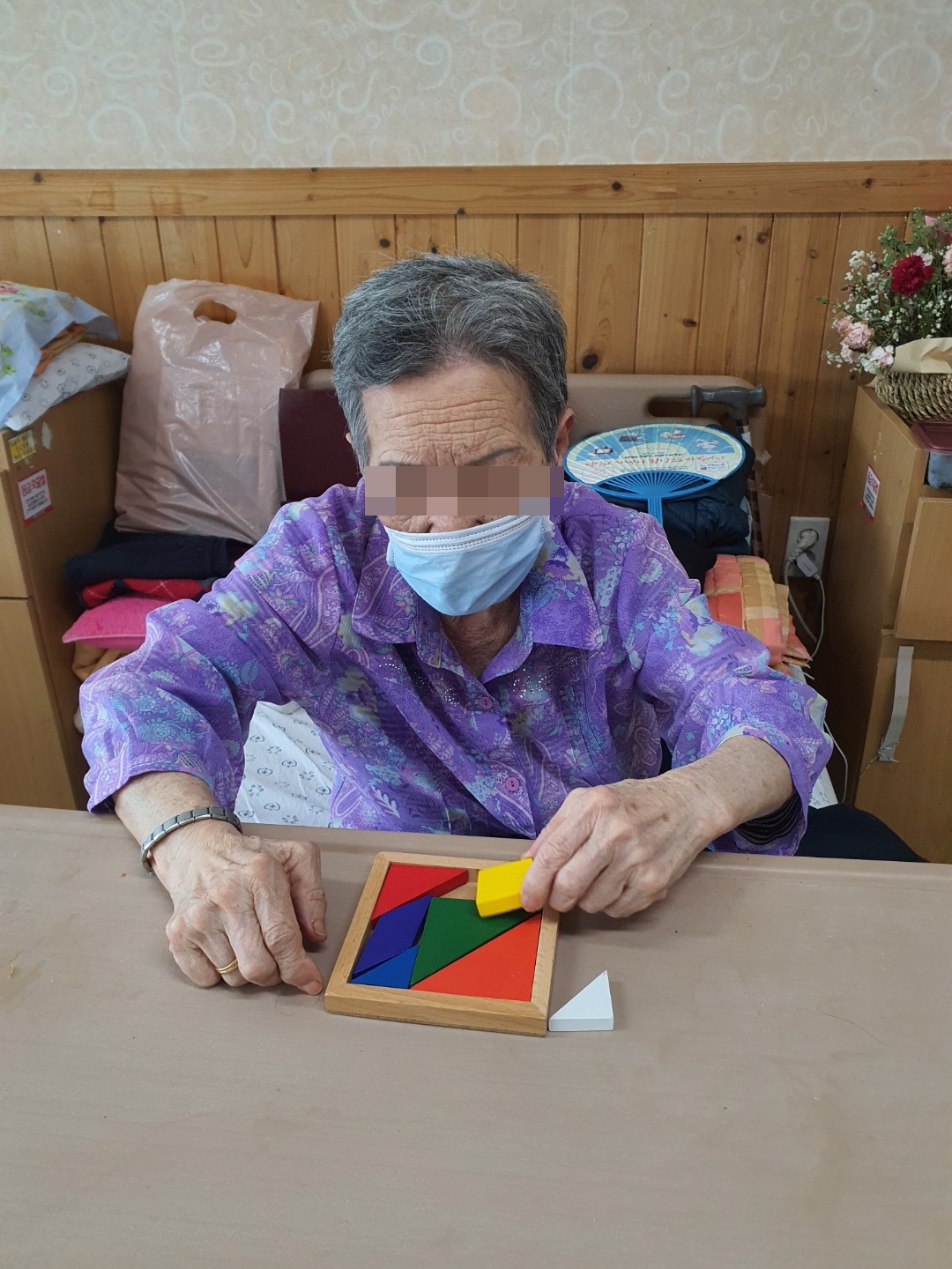 어르신들께서 칠교조각을 다 맞추기 위해서