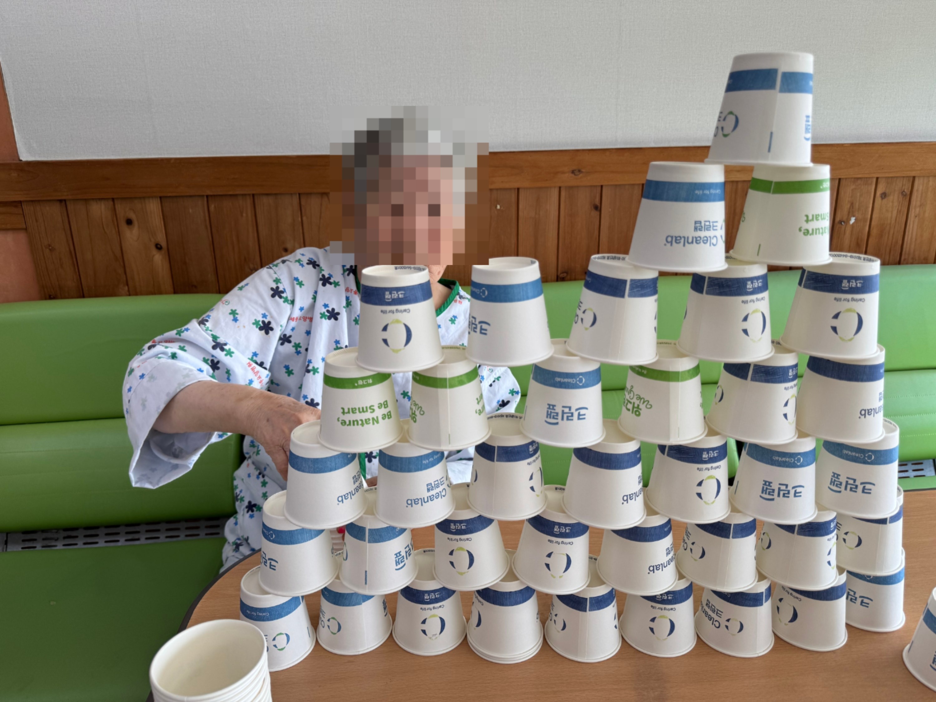 하지만 서로 격려하며 천천히 컵을 쌓아 올리는 과정속에서 성취감과 즐거움을 느끼셨습니다.