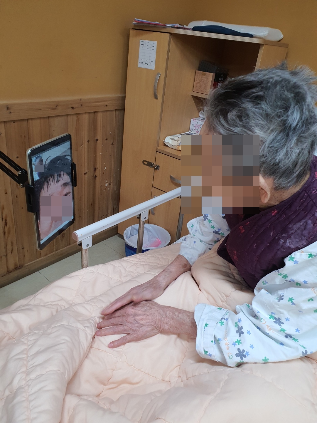 저희 세종 요양병원은 태블릿 PC를 통하여
