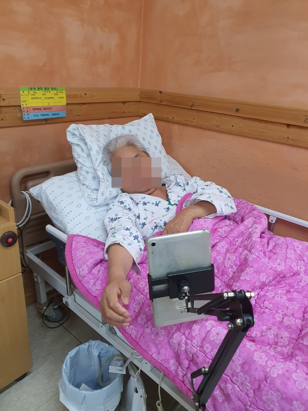 저희 세종 요양병원은 태블릿 PC를 통하여