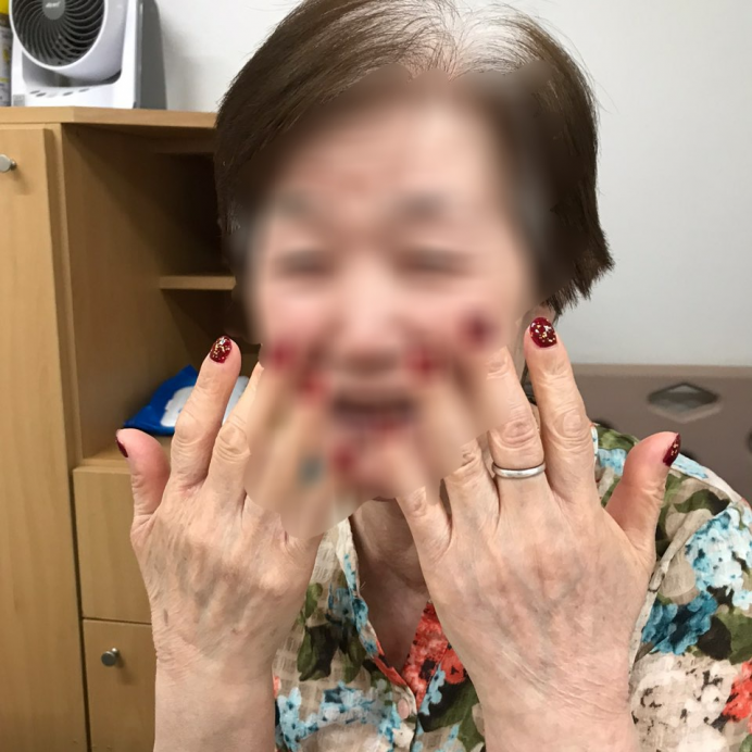 네일아트가 끝난 후 손톱을 보시며 매우 만족해 하시는