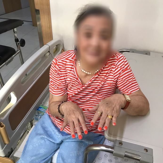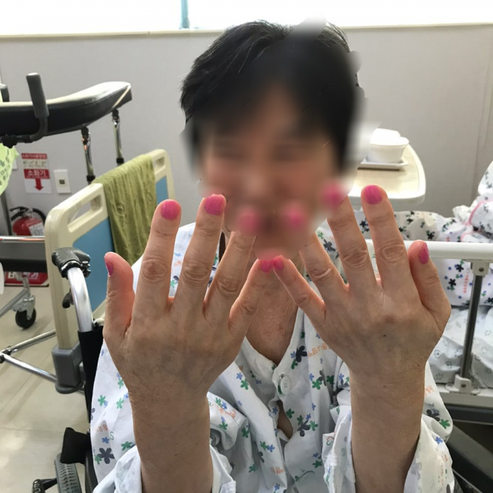 네일아트가 끝난 후 손톱을 보시며 매우 만족해 하시는