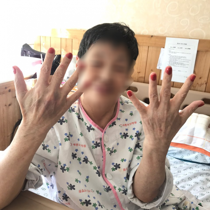 네일아트가 끝난 후 손톱을 보시며 매우 만족해 하시는