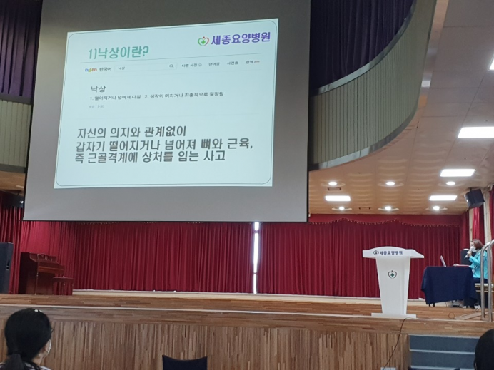 낙상 및 응급처치를 교육하였습니다.