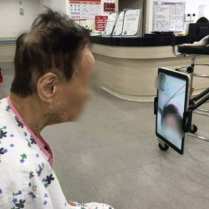 저희 세종 요양병원은 태블릿 PC를 통하여