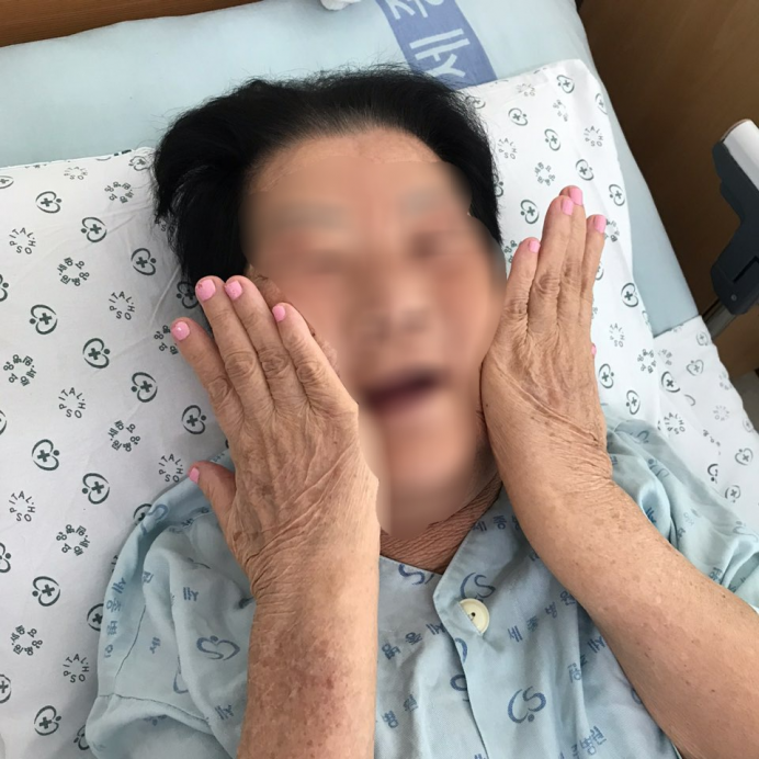 네일아트가 끝난 후 손톱을 보시며 매우 만족해 하시는