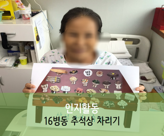 오늘은 16병동 어르신들과 함께한 인지활동으로 추석 차례상차리기를 진행하였습니다.