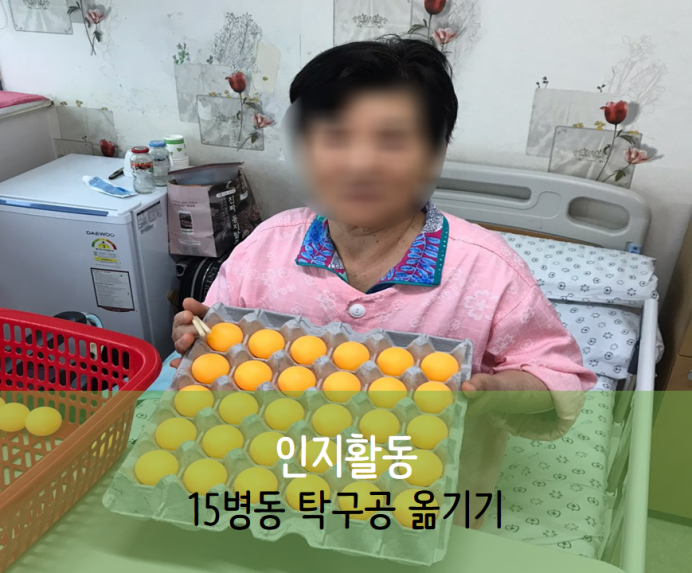 오늘은 15병동 어르신들과 함께한 소근육발달활동인 탁구공옮기기를 체험했습니다~