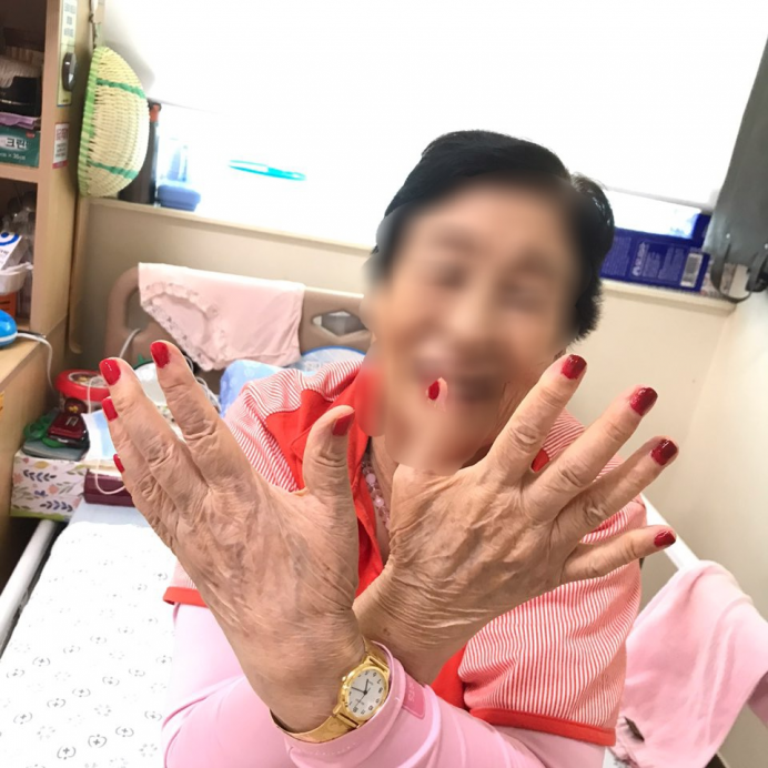 네일아트가 끝난 후 손톱을 보시며 매우 만족해 하시는