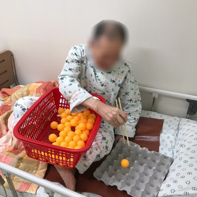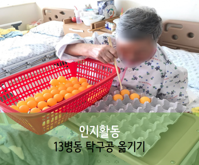 오늘은 13병동 어르신들과 함께한 소근육발달활동인 탁구공옮기기를 체험했습니다~