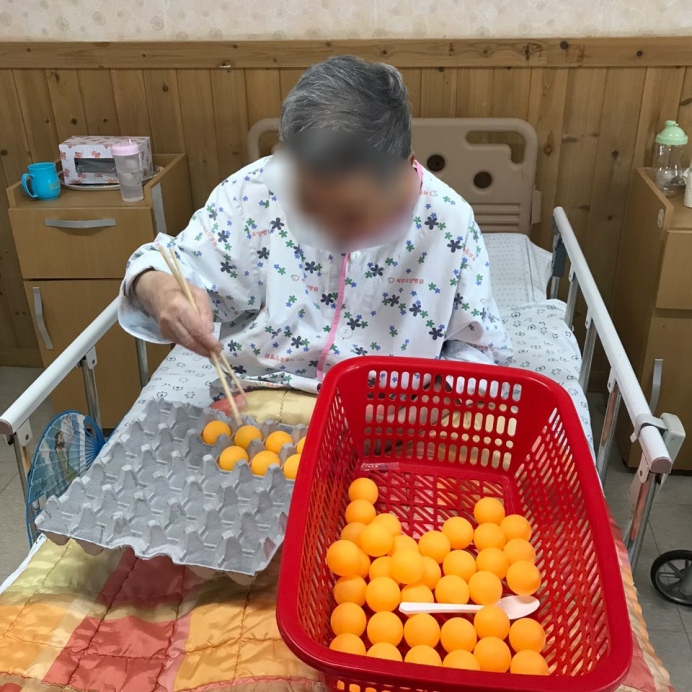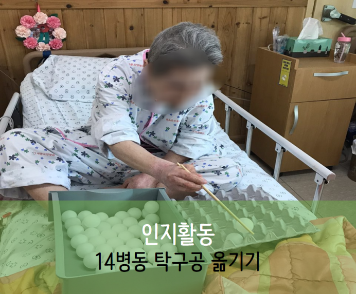 오늘은 14병동 어르신들과 함께한 소근육발달활동인 탁구공옮기기를 체험했습니다~