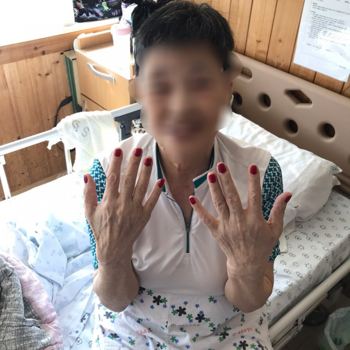 네일아트가 끝난 후 손톱을 보시며 매우 만족해 하시는