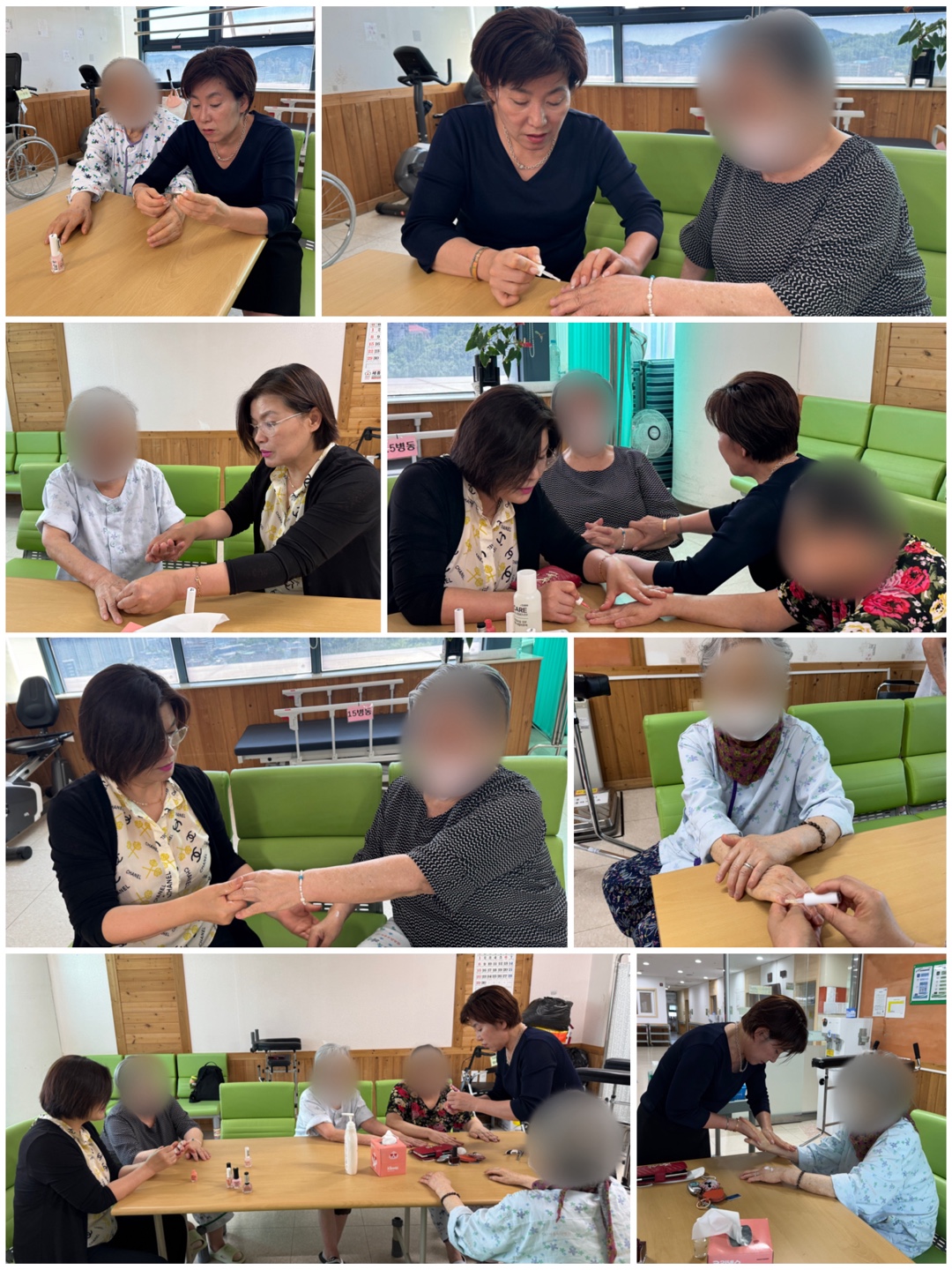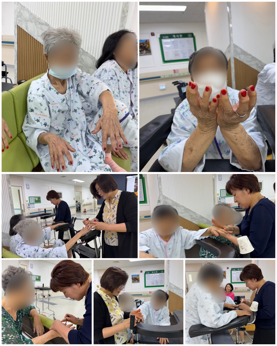 어르신들의 손을 조심스럽게 잡고, 색을 고르고,