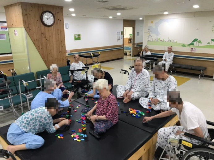 세종요양병원에 입원중이신 어르신들과 함께 치매예방활동인 나무블럭 쌓기를 하였습니다.