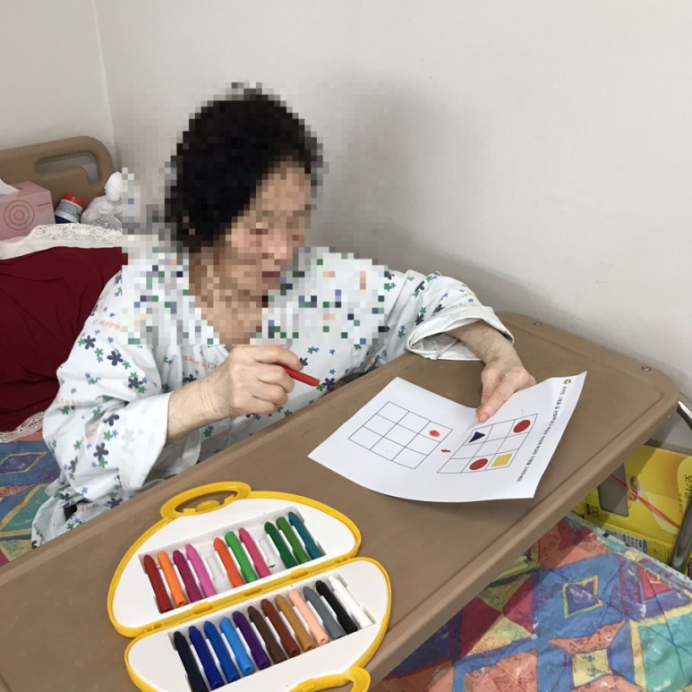 세종요양병원에 입원중이신 어르신들과 함께 치매예방활동인 번호에 따라 색칠하기를 하였습니다.