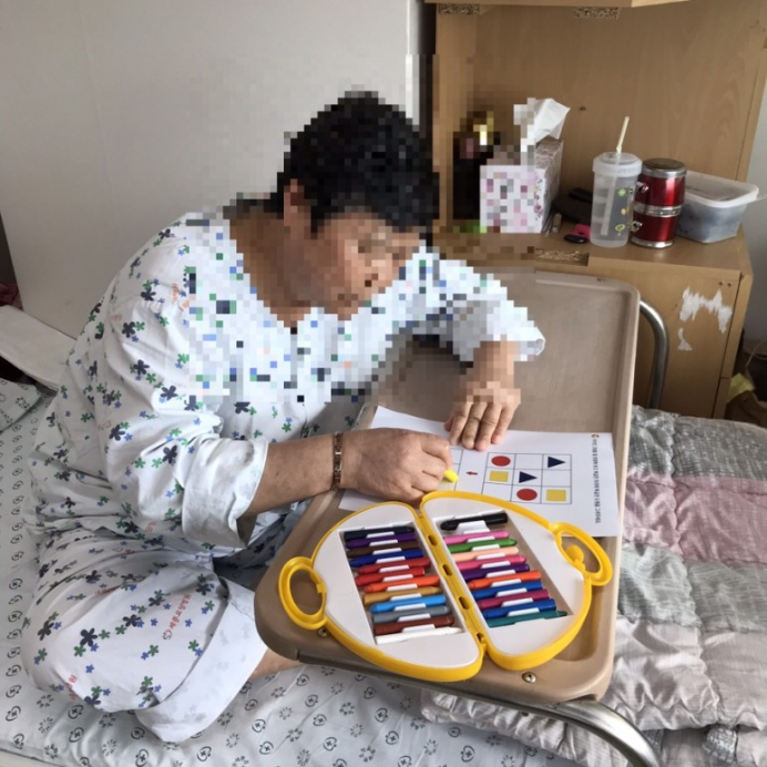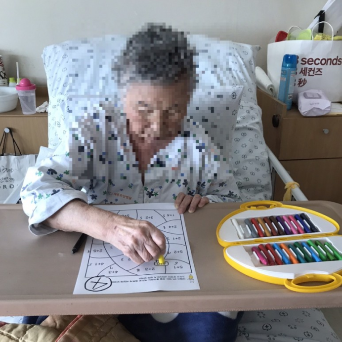 세종요양병원에 입원중이신 어르신들과 함께 치매예방활동인 번호에 따라 색칠하기를 하였습니다.