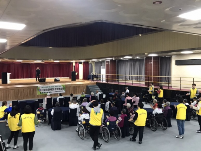 9층예향홀에서 어르신들이 따스한세상 문화 예술단의 경로 효 콘서트를 관람하셨습니다!