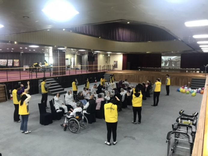 어르신들과 함께 신체활력 증가를 목적으로 풍선배구놀이를 시행해 보았습니다.