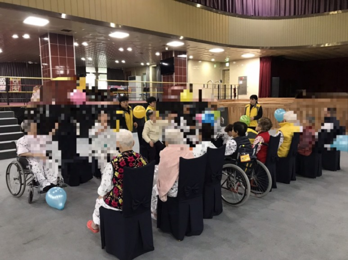 어르신들과 함께 신체활력 증가를 목적으로 풍선배구놀이를 시행해 보았습니다.