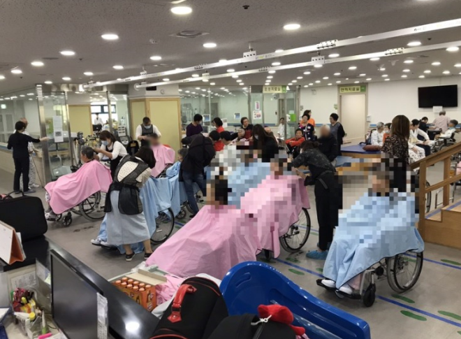 세종요양병원 13,14,15,16병동 어르신들이 이미용서비스를 받으시는 중입니다!