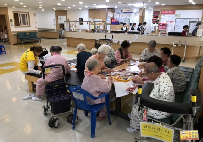 화투 장을 같이 보시면서 여러가지 색을 이용해서 색칠하기를 시작하였습니다. '화투'색칠하기 친숙한 물건의 도안을 가지고 색칠하기를 하니 어르신들께서도 이해도 빠르시고 보다 쉽게 접근할 수 있었습니다. 정말 이쁘게 색칠하셨어요. 색칠하기는 어르신 치매예방프로그램으로 좋은 프로그램입니다.