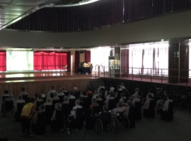 어르신들이 9층 예향홀에서 반드시잡는다 1부를 감상하시는 중입니다