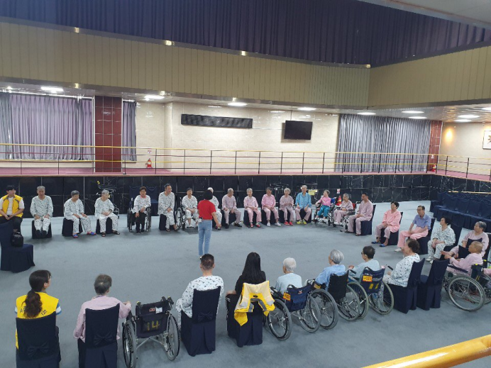 어르신들께서 신바람실버건강체조를 신나는 음악에 맞추어 하셨습니다.
