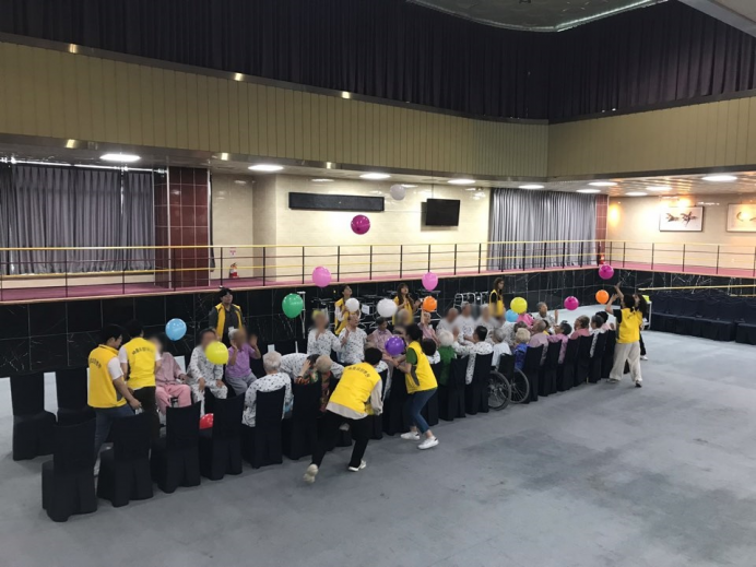 어르신들께서 신체활동으로 풍선배구를 실시하셨습니다.