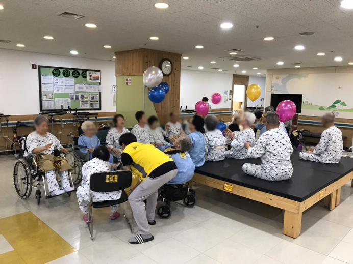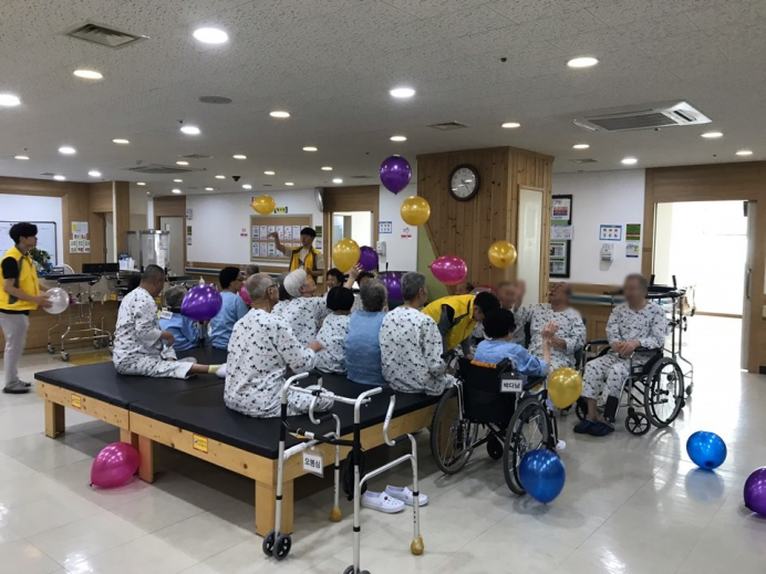 11병동 어르신들께서 신체활동으로 풍선배구를 실시하셨습니다.