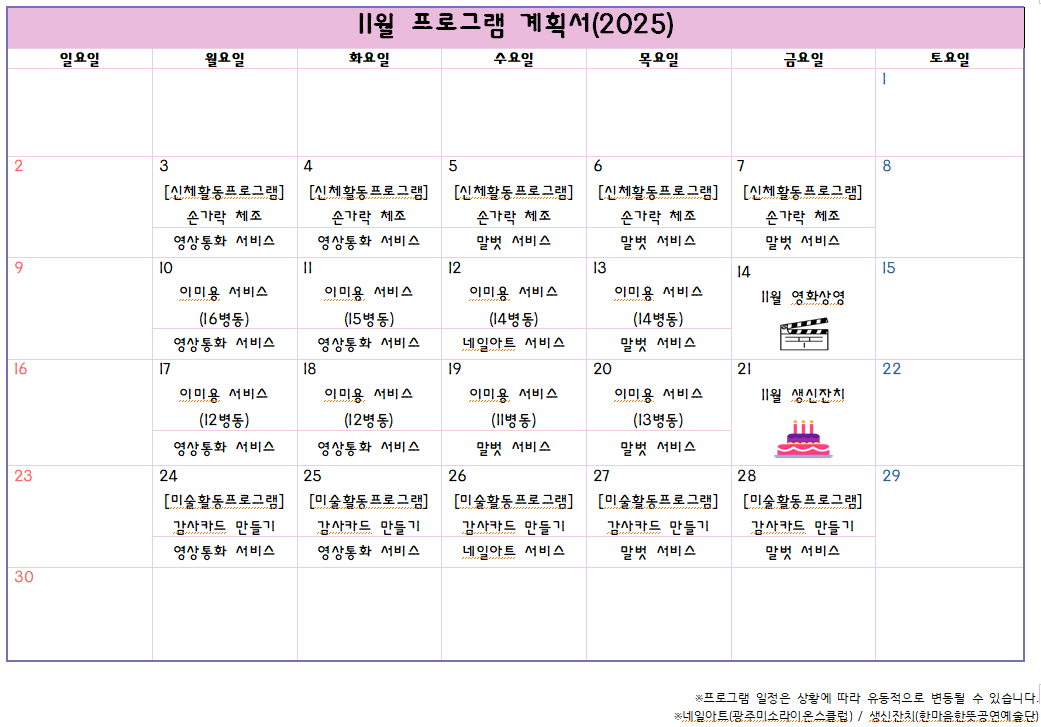 11월에도 어르신들의 건강과 행복을 위해 정성껏 준비하겠습니다.