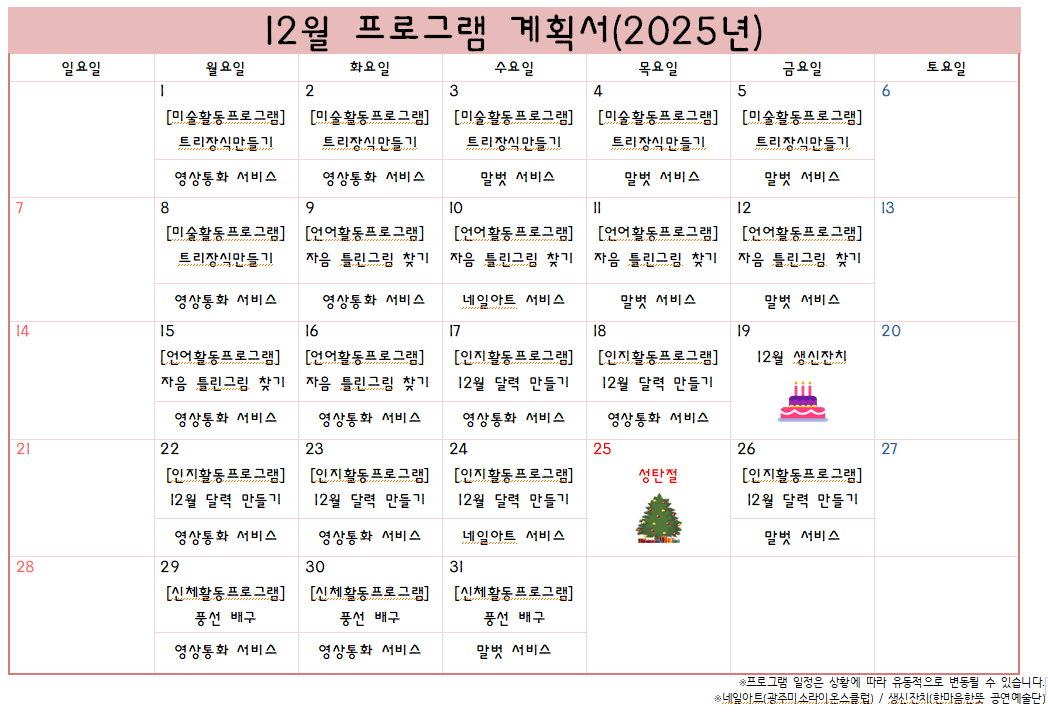 연말을 보내실 수 있도록 미술·언어·인지·신체 등