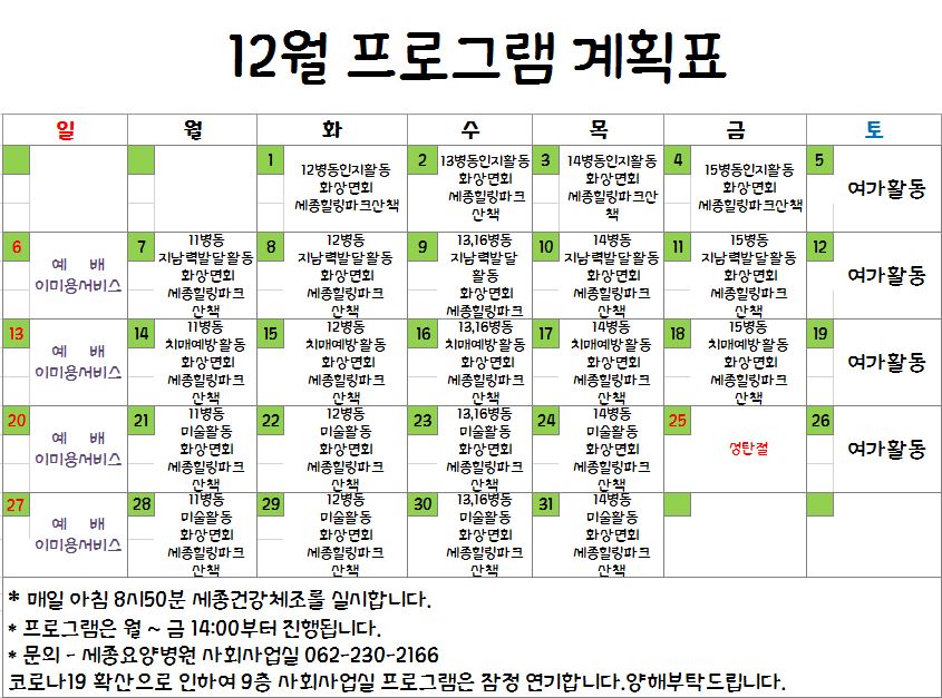 오늘은 2020년 12월 프로그램을 알려드리겠습니다.