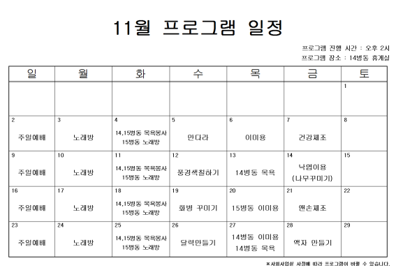 11월 프로그램 일정 입니다.