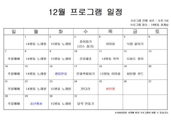 12월 프로그램 일정