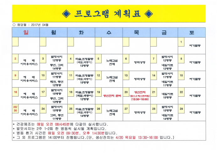 2017년 04월 프로그램 계획서!!