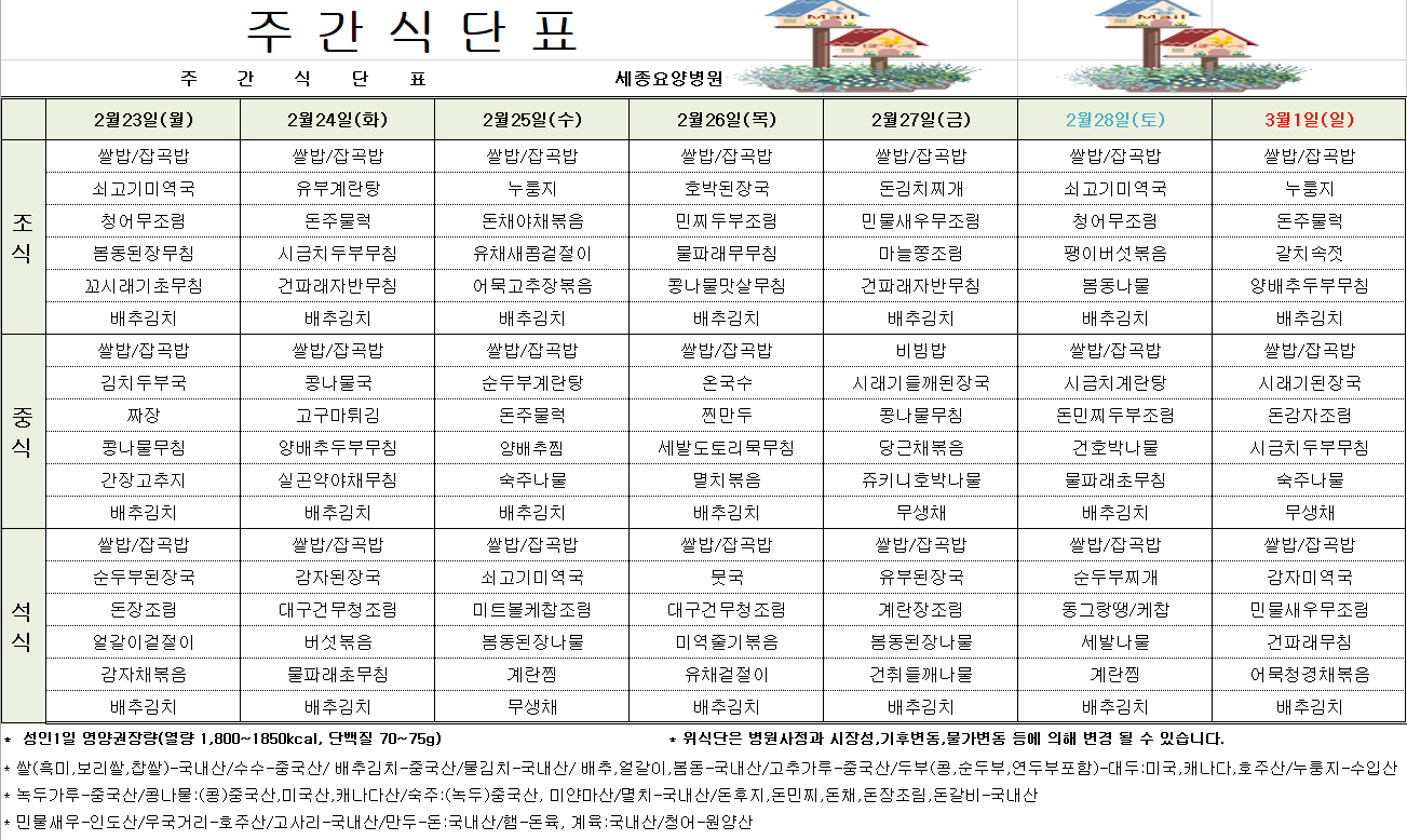 📅2월 넷째 주 식단표(26/02/23~26/03/01)