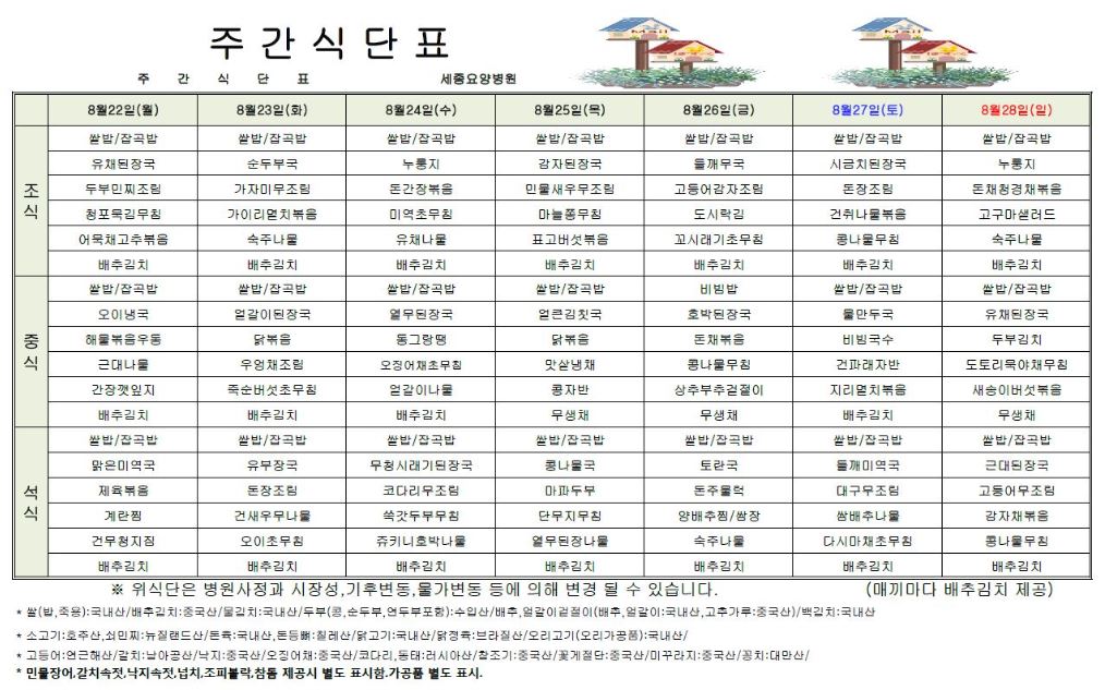 세종요양병원 22년 8월 넷째주 식단표