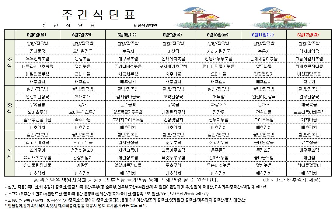 세종요양병원 6월 첫째주 식단표